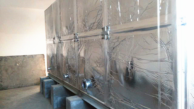 此水箱外圍為鋁箔布橡塑保(bǎo)溫,客戶在找到(dào)我們時根本不了解水箱保溫情況,隻告訴我們水箱是在學校用,供學校學生用水。水溫要(yào)保(bǎo)存好才行。經過我們的了解,我公司向客戶提供使用玻璃鋼材質,外加橡塑保溫。水箱(xiāng)材質用(yòng)水既安全、衛生又耐用,用個十多年沒(méi)問(wèn)題,而且(qiě)橡塑保溫價格便宜,水(shuǐ)溫在24小(xiǎo)時之內能保持10-30度左右是沒有問題的