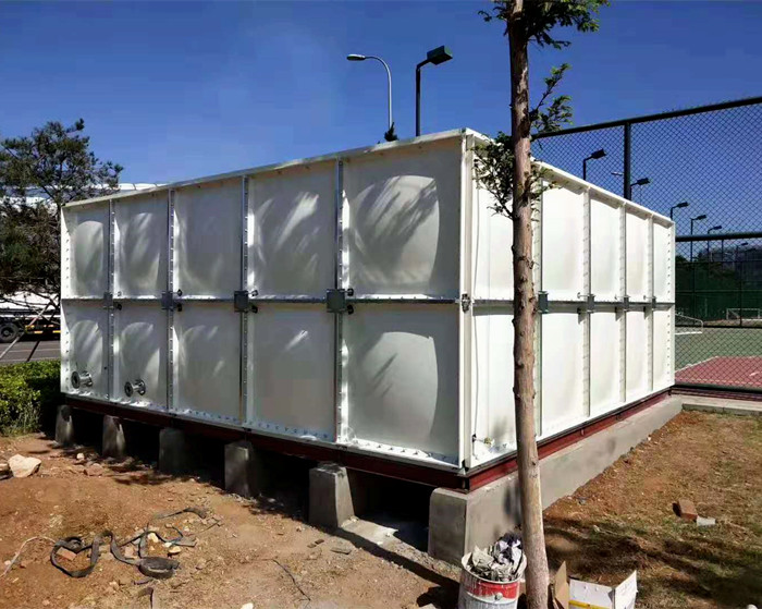 SMC水箱在安裝時要注意玻璃鋼水箱的底板,同時在(zài)兩張單板之間添加密封膠條(tiáo),用φ10的螺栓連接。使底板密封牢固,螺栓加力時要一次均勻加(jiā)力(lì),每個螺栓加力3-4次,不得一次性(xìng)用力過猛,否則因用(yòng)力不均勻而造成裂板現象。